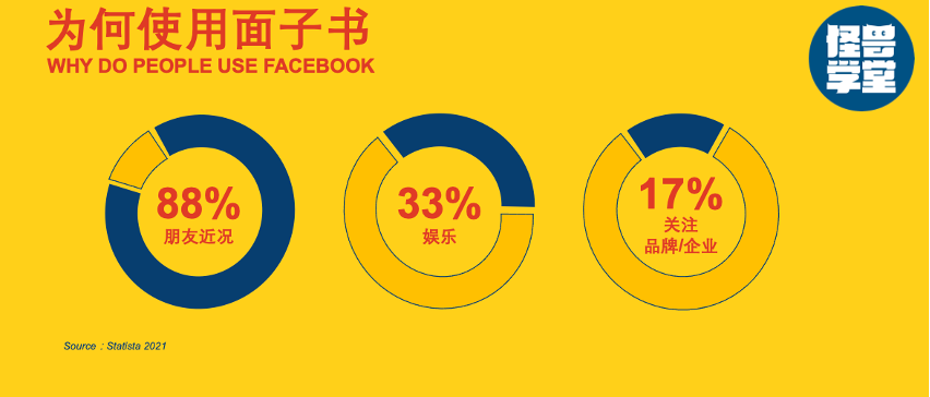 这是一个能够让我们知道身边朋友近况的平台:谁最近学会了新的菜肴、谁最近庆祝生日、谁家亲人不幸往生了、谁家新添了可爱的宝宝等。面子书几乎已经是大多数人的日常了。因为面子书的用户众多,所以也吸引了许多的品牌或企业去开个 official page,希望在面子书上吸粉圈粉。但是,2021 年 Statista 调研报告显示,大约只有 17% 的消费者是专门为了关注某个品牌或企业而使用面子书,虽然这个数据有点低,但也代表了其实有很多品牌或企业并没有完全读懂消费者的心,所以才无法吸引到他们去关注。想要俘虏消费者的心,最重要的是换位思考,站在他们的立场去考量,到底你的品牌跟消费者有什么关系?关不关注品牌的专页对消费者的生活有什么影响?