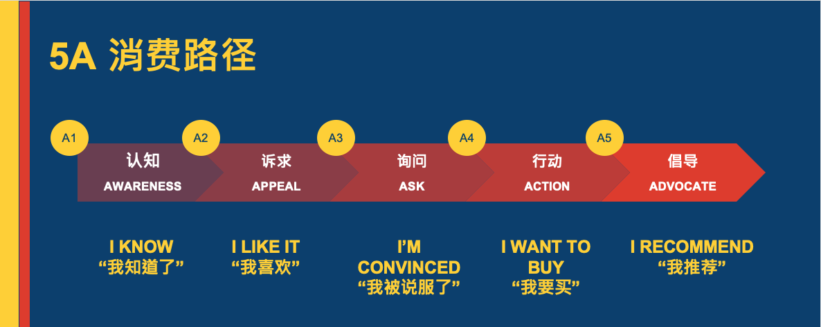 很多品牌在做营销的时候,都忘了要思考 5A消费路径。如果做营销不将5A 消费路径纳入策划中,很多时候都会掉入了「无用功」这个陷阱里面。「无用功」的意思就是你努力付出,但是却看不到你要的结果。为什么会这样呢?Imagine 如果品牌只是不断地在说明我们的产品有多好,说白了品牌就只做到了「说明产品」这一步,消费者也只能“哦,知道了”,这也就是 5A 消费路径里的 [1A] Awareness 而已。如果品牌继续滔滔不绝的只在 [1A] 这个点徘徊,品牌就有可能忘了还需要在不同的营销渠道或内容呈现上,让消费者从「知道了」提升至「我喜欢」、再进而「说服」消费者,然后影响他们的购买决定。当然,如果品牌还能继续努力,甚至有可能做到成功鼓励消费者「推荐」和「倡导」,来完成整个 5A 消费路径。