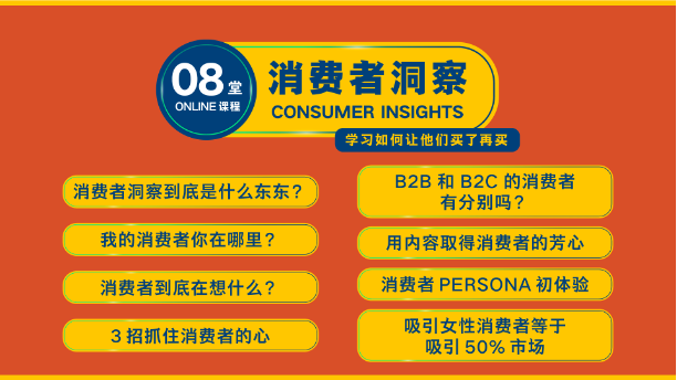 无论是个人还是团队,这个长达 8 堂课的 E-Learning 线上学习都能满足到大家。从寻找目标消费者、再深入了解他们的消费心理、然后学习如何去影响他们的消费决定,学习所有有关消费者消费习惯的迷思等。每个行业都有自己的消费者,可惜的是,几乎每个行业愿意在自己的消费者身上所花的时间并不多,大部分都花在客户服务,而不是在洞察他们的消费行为和消费决定上,所以平白丢失了许多能够 close deal 还有许多能够cross sell 以及 upsell 的机会。需要洞察消费者的不仅仅是 B2C 的行业,其实 B2B 的企业也不能忽视:你们想一想,如果你的商业客户是怎么购买你都了然于胸,你知道如何提高他们的 average sales,这个该是多么美妙的事啊。