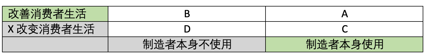 做出一项设计者不信能改善使用者生活,自己也不会去用的产品,这叫做《仙家》。这象限可以获得长久性成功的机率非常小,且把自己处于道德危殆之间!请不要对号入座,这只是分析,说的不是你 