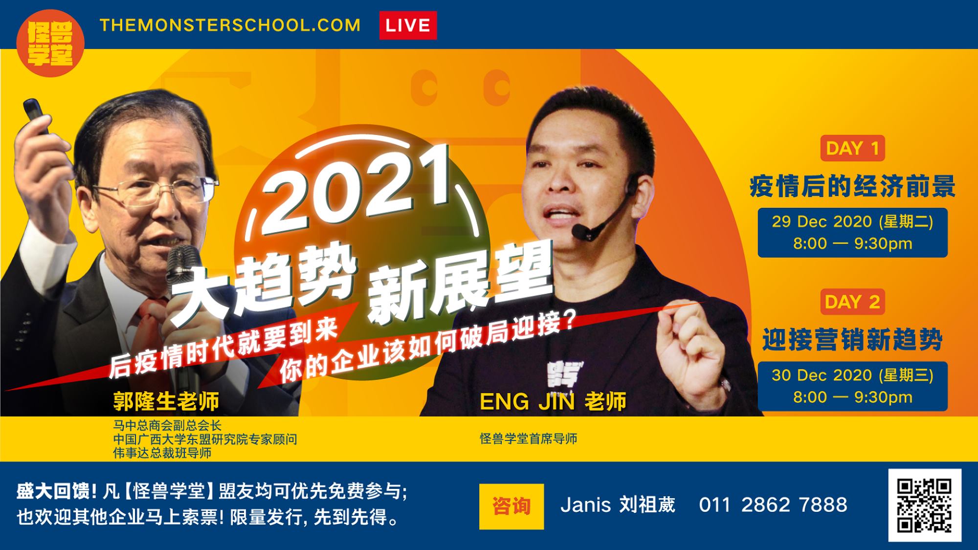 对了!【怪兽学堂】首席导师 Eng Jin 受邀在以下日期直播分享《疫起客观迎复苏》的课题,大家多多支持哦!