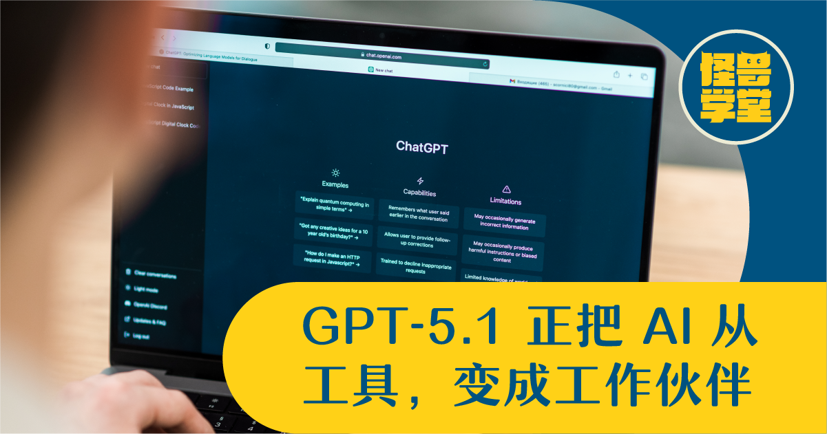 GPT-5.1 正把 AI 从工具,变成工作伙伴 过去几年,AI 的升级几乎都在比一件事:谁更聪明、推理更强、解题更快,但老实说,对多数使用者来说,体感有限。直到 OpenAI 推出 GPT-5.1,我才明显感觉到一件事变了。